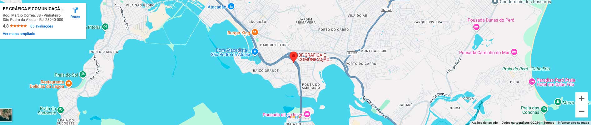 A BF Gráfica é uma empresa de comunicação visual, há mais de 10 anos no mercado, que é hoje, reconhecidamente, destaque em seu segmento em São Pedro da Aldeia, Cabo Frio e Região. Sinônimo em comprometimento e qualidade, sempre atenta às novidades do mercado e as necessidades de seus clientes, a empresa é também conhecida por seu ótimo atendimento ao cliente, o que tem feito com que conquiste cada vez mais a sua preferência.
